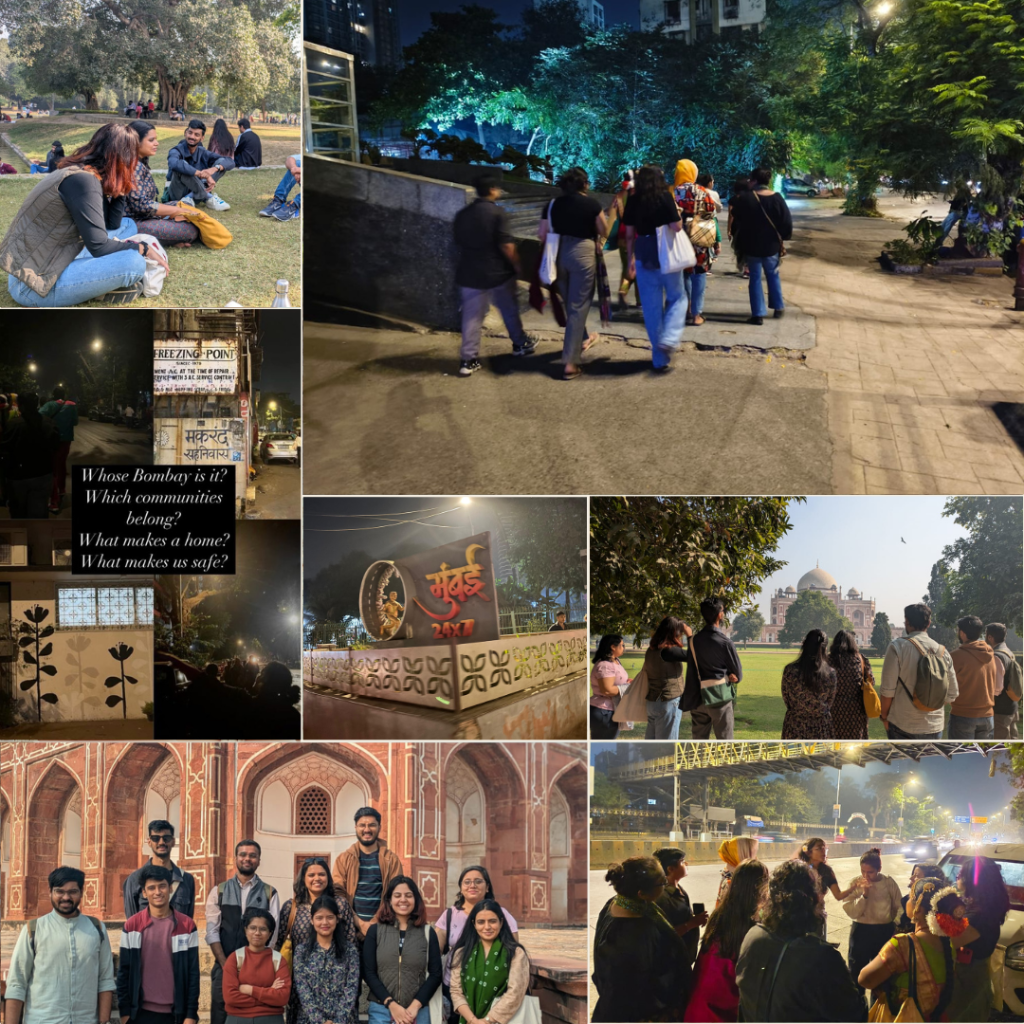 Public spaces are deeply intertwined with the fabric of our societies, influencing not just how we move but how we form relationships, build communities, and exercise our rights. Yet, we often occupy these spaces only with purpose: commuting, running errands, or completing tasks that keep our routines flowing. In light of this, we organized a walk in collaboration with the Why Loiter Campaign in Mumbai, where 11 women and gender non-conforming community members walked from Dadar to Bandra station at midnight, steered by our team member Anvita Walia in collaboration with Neha Singh, the founder of the Why Loiter Campaign. In Delhi, our team members Arshiya Kochar and Vibhuti Kapil partnered with Global Shapers Gurugram to facilitate a walk where 11 of us wandered across the city in the morning. Held on 30th November, these walks were about being present without any specific purpose—to reclaim public spaces as places for leisure, joy, and community. These walks challenged societal norms that tie our worth to productivity and reinforced our right to simply exist in shared spaces.
